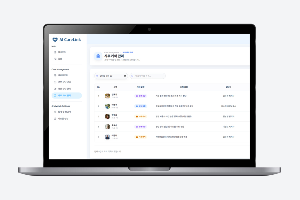 AI 기반 선별-상담-분석-조치까지 연결되는 통합 돌봄 플랫폼
